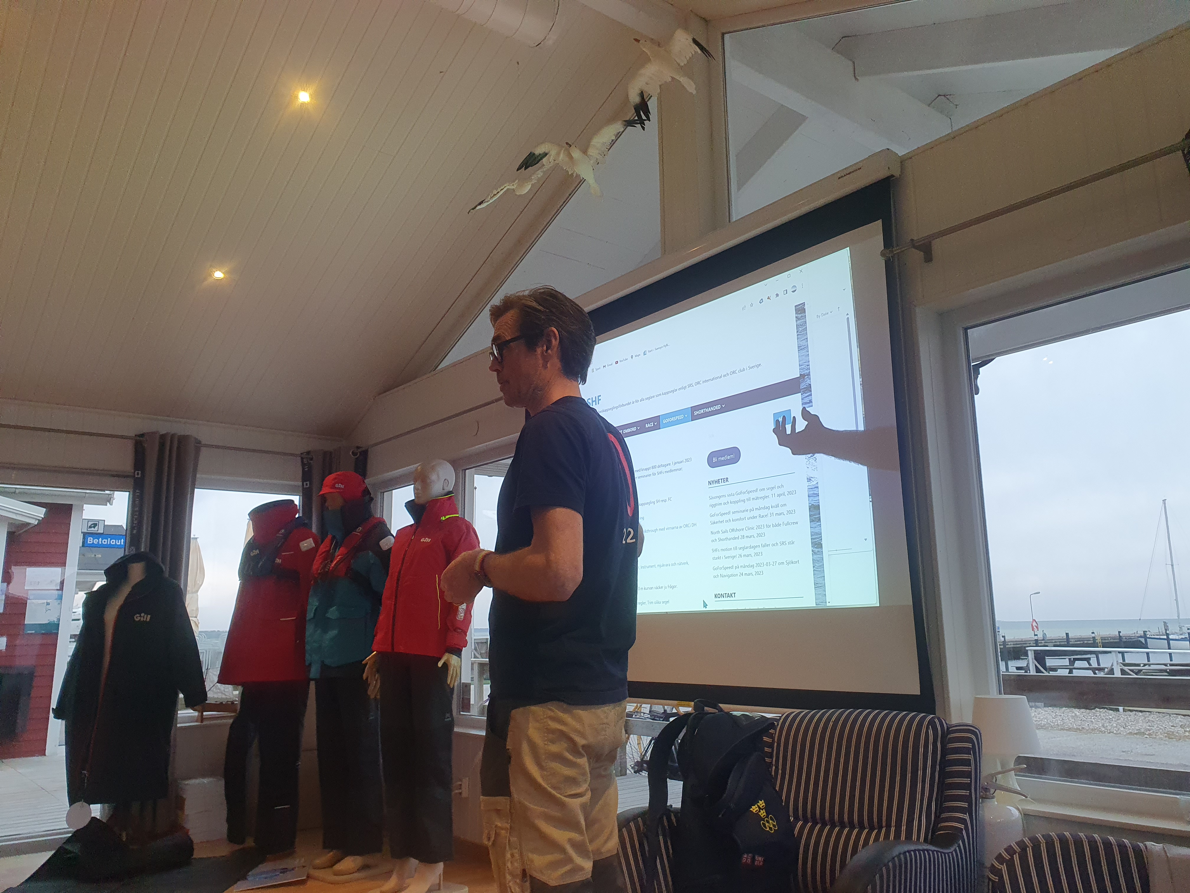 En lyckad klubbkväll med bra genomgångar av dynema linor av Martin Strandberg och Svenska Havskappseglarförbundets seminario om våra sjökort och navigering med elektroniska hjälpmedel. Tim från Nautec hade med sig många seglarkläder från Gills stora sortiment som vi kunde beställa till stora rabatter.