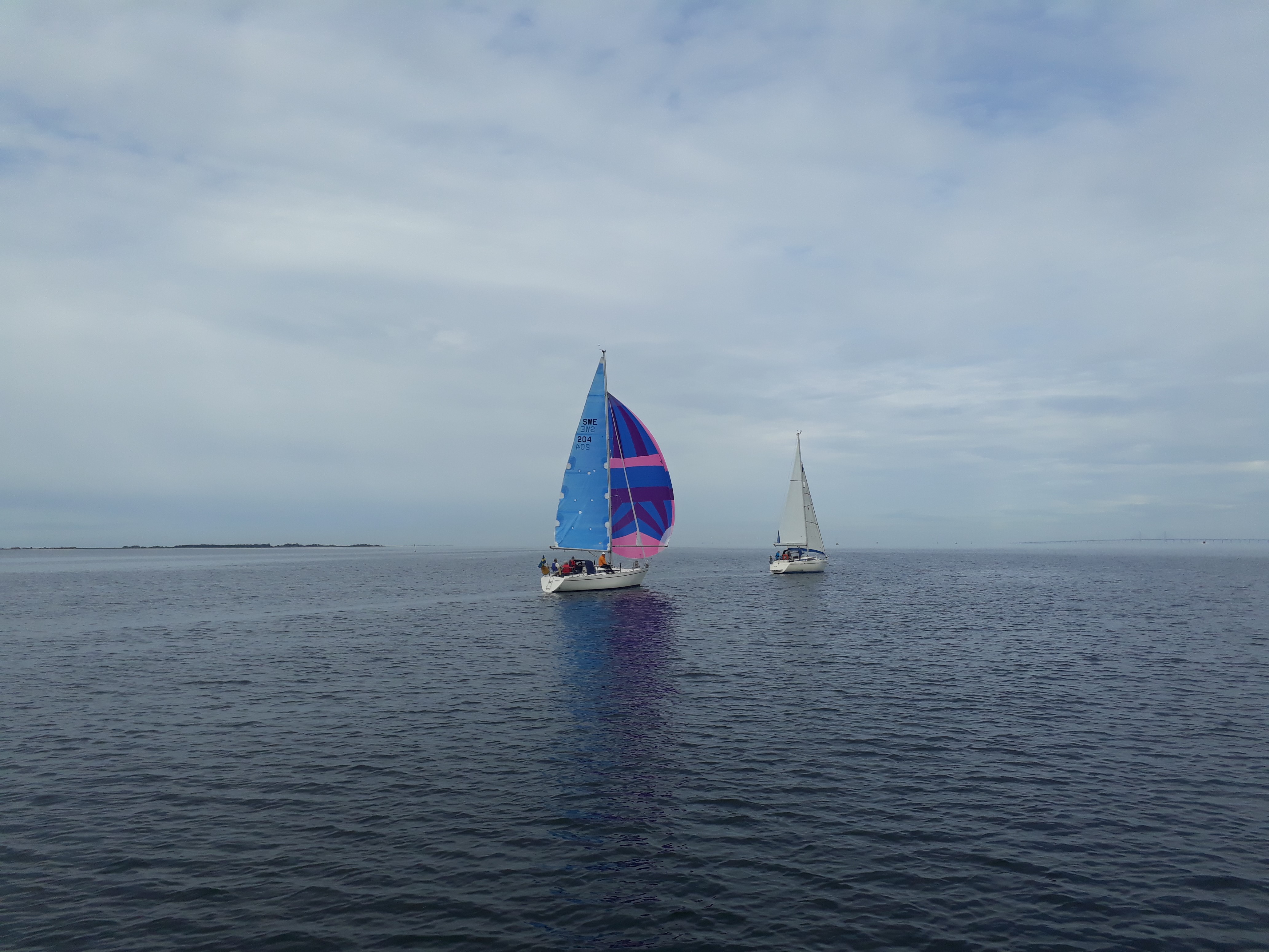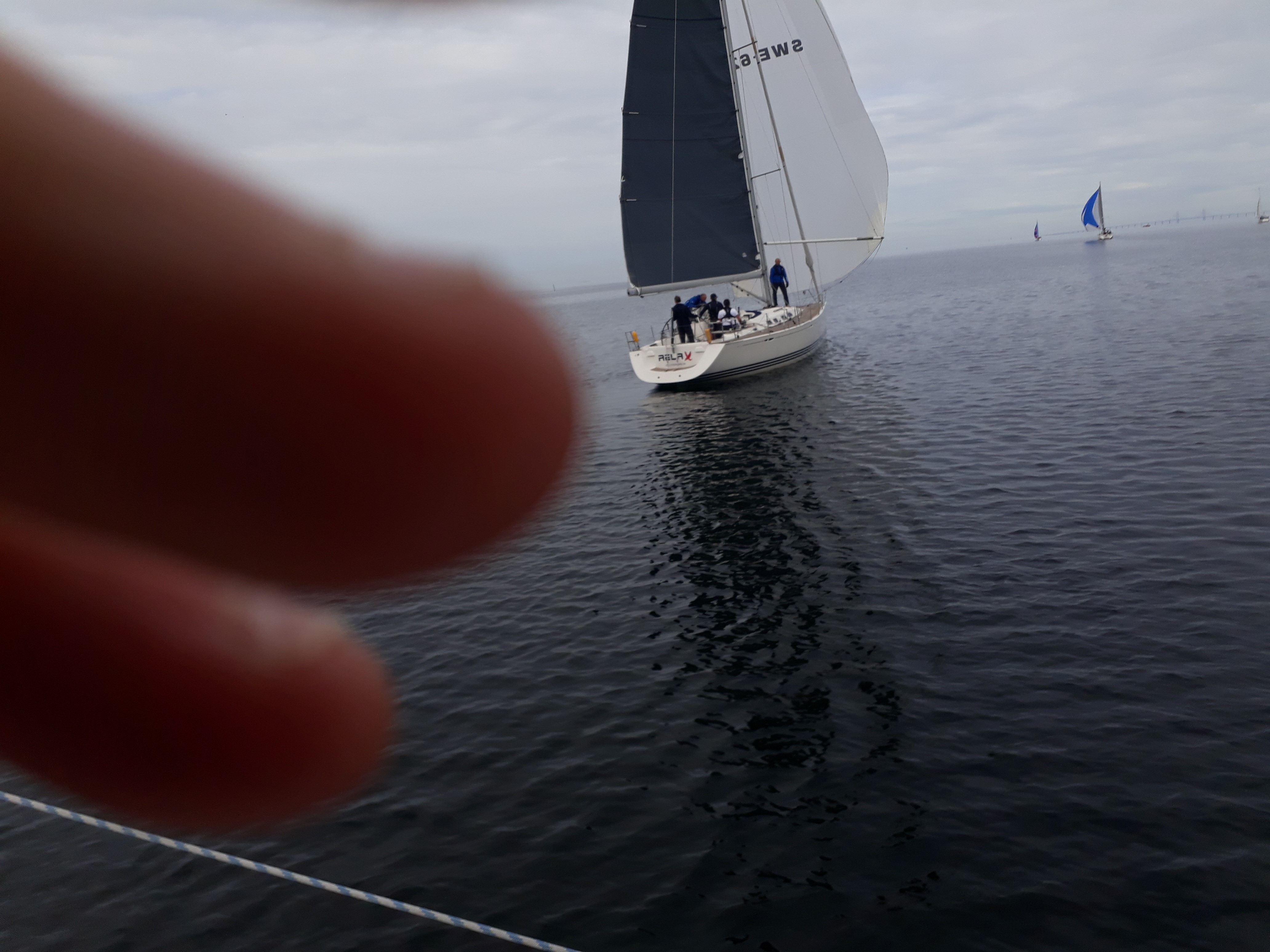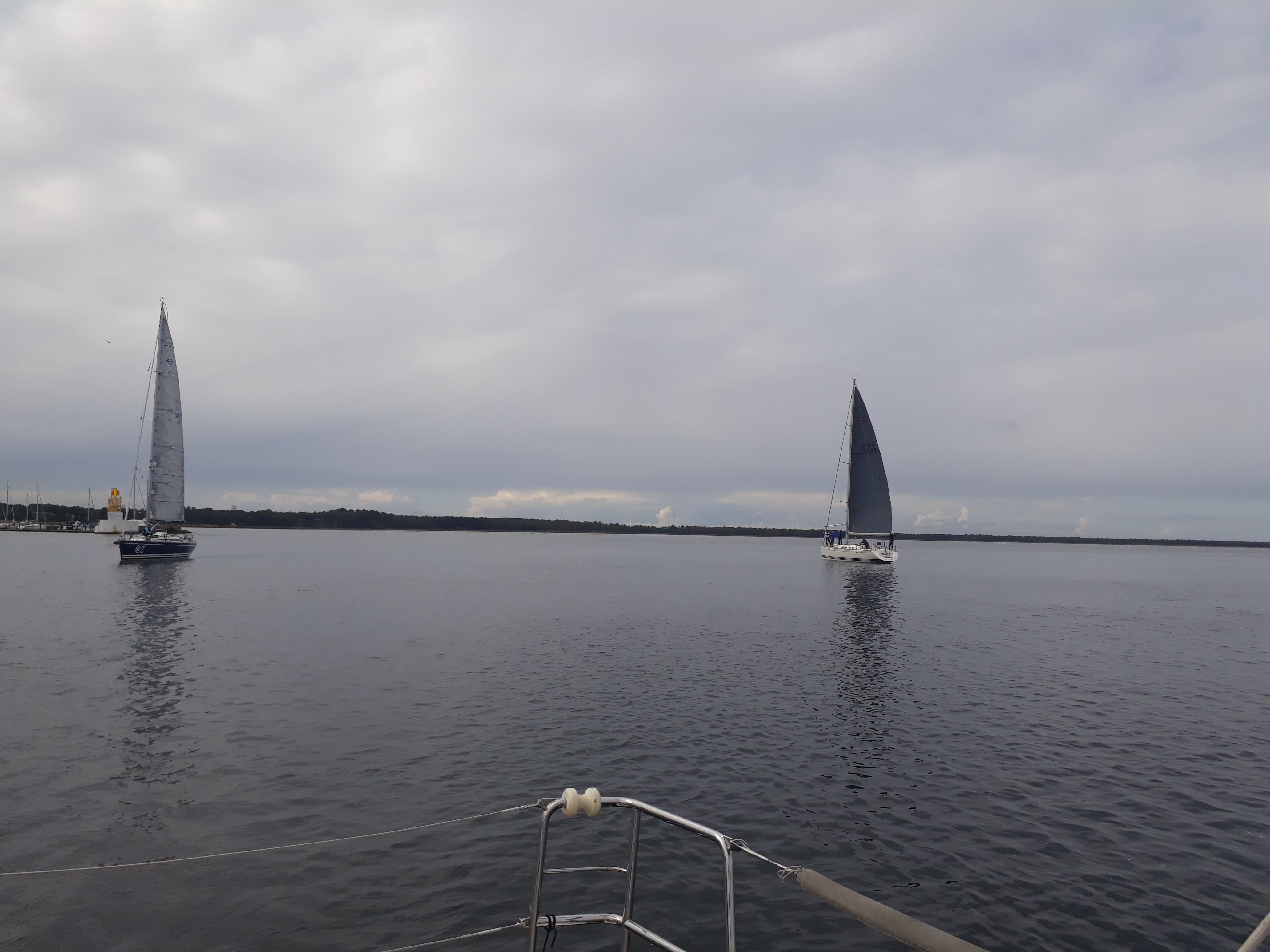 6 båtar dök upp med förhoppningen om att vinden skulle dyka upp. Var en väldigt svag vind från sydost. Bana lades med en av de närmaste farledsmärkena som rundningsmärke så att vi skulle kunna komma runt banan. Såg dåligt ut en lång stund men efter att vinden varit på nord vred den sedan mot sydost igen och fixade så att @Z med Bosse kunde defilera i mål. Grattis till årets kanalmästare som fick ett snabbdopp i kanalen.